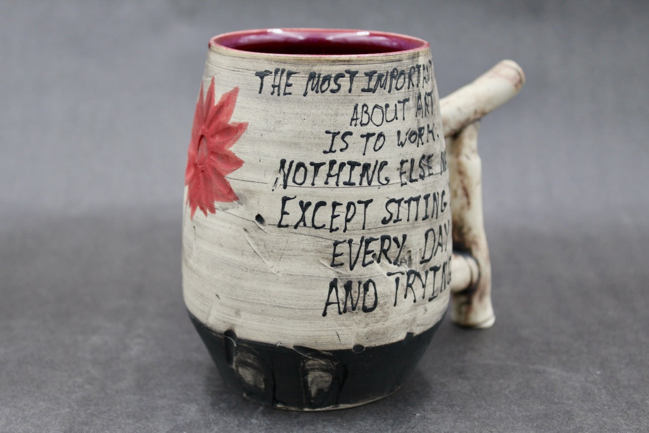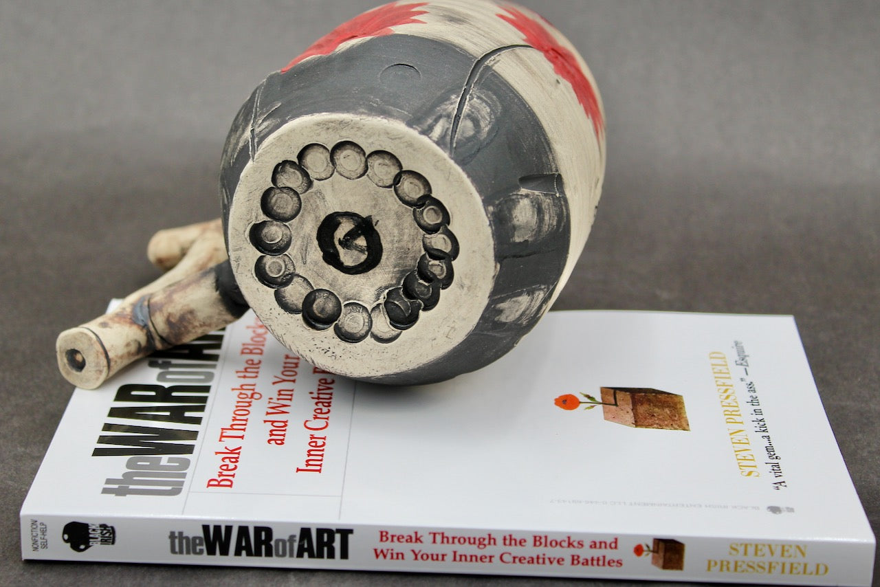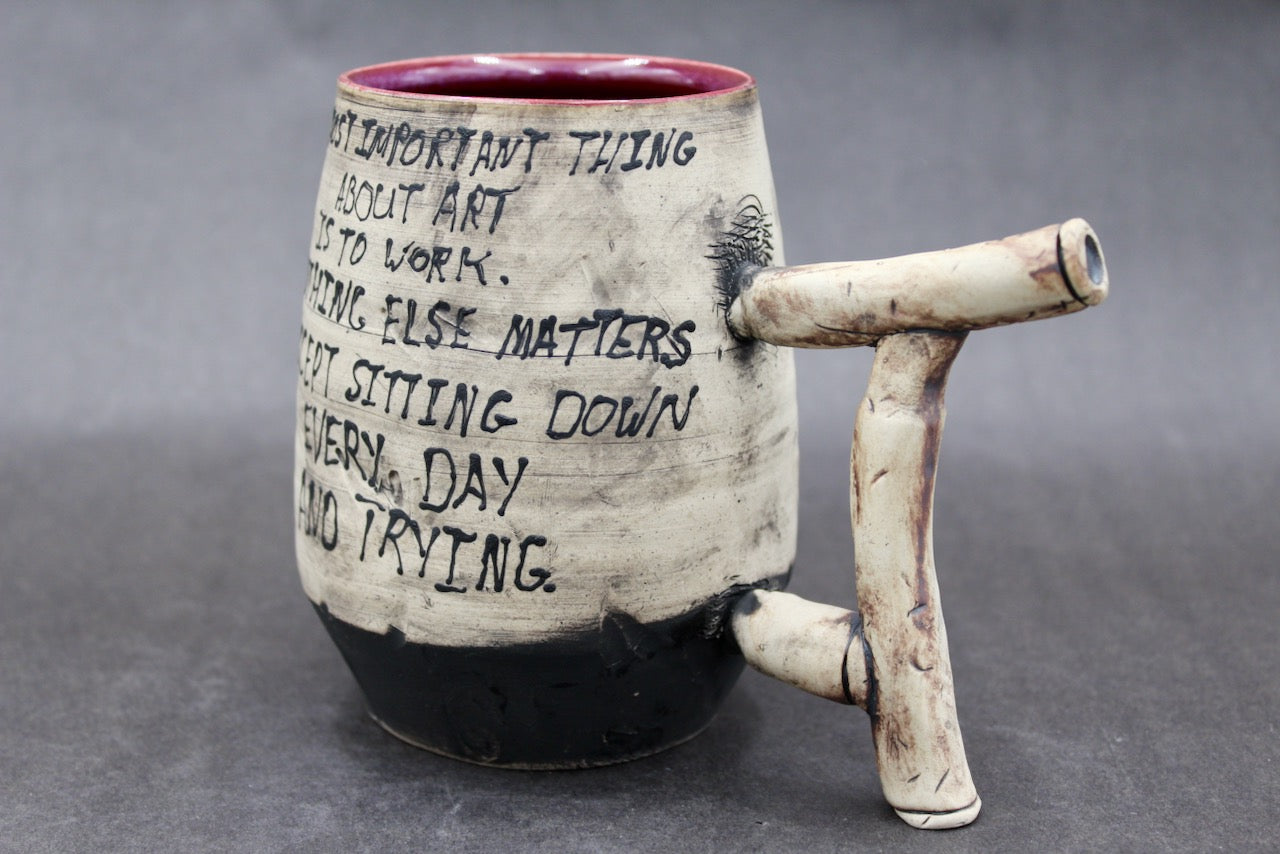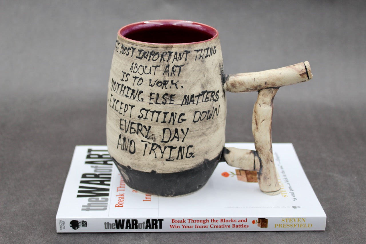 This mug is a collaboration between author Steven Pressfield (stevenpressfield.com) and potter Joel Cherrico (cherricopottery.com). Joel and Steven share the sales of their collaborative art 50/50.