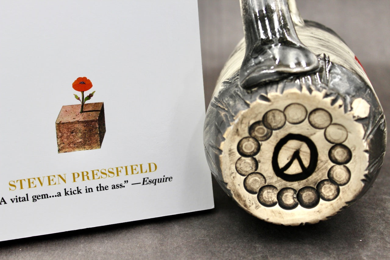 Collectors Edition Book: Two bookplates, made from handmade paper by Sienna Cherrico, were mounted in the inside cover by the Cherrico Pottery Team, using archival glue. One bookplate signifies the book as a Collectors Edition, exclusively available here on mugsandbooks.com It bares an insignia that matches the mug. The second bookplate was sent to Steven Pressfield, autographed, then mounted in your book.