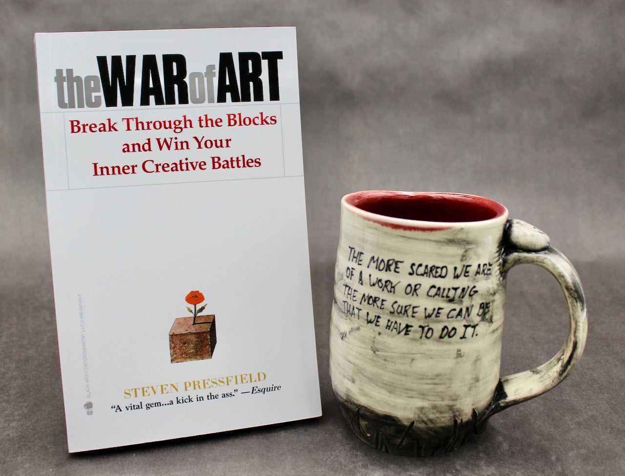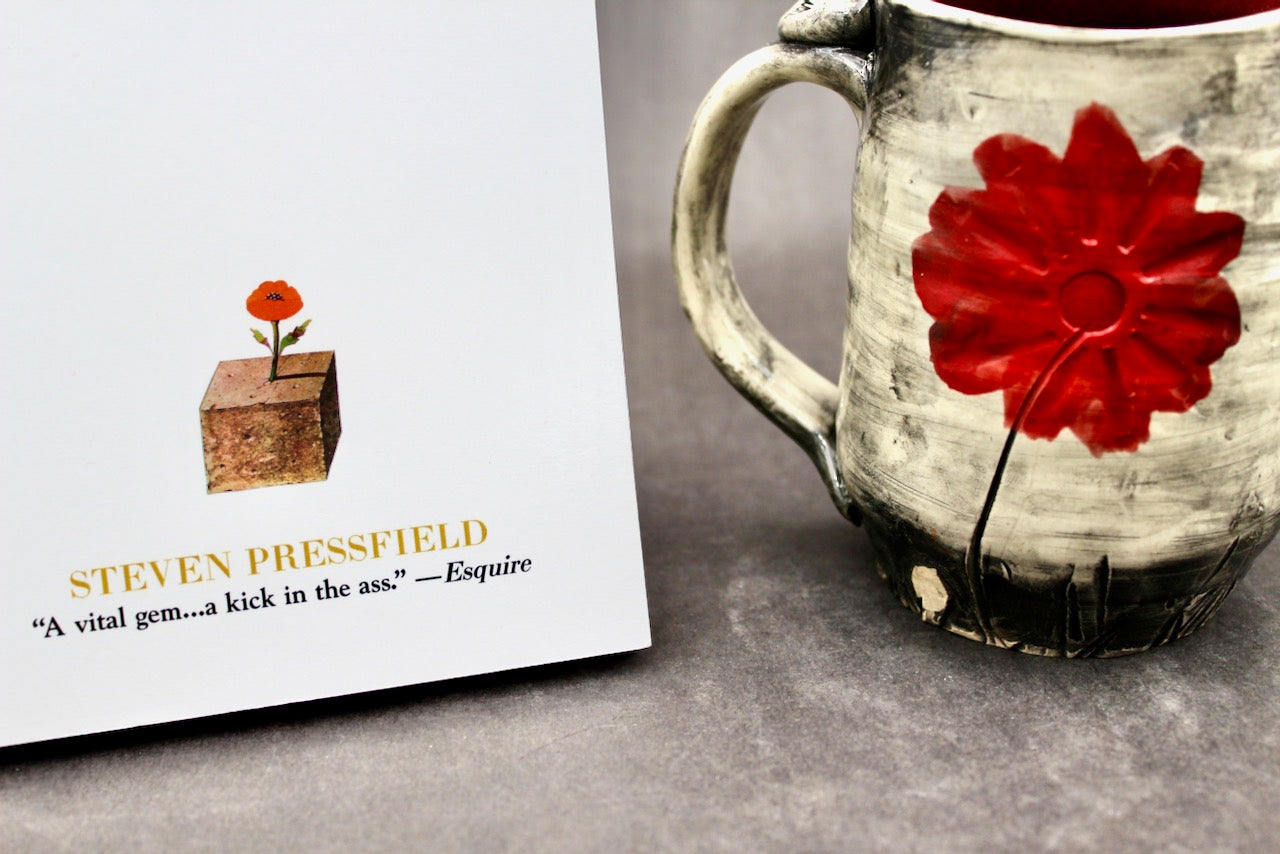 This mug is a collaboration between author Steven Pressfield (stevenpressfield.com) and potter Joel Cherrico (cherricopottery.com). Joel and Steven share the sales of their collaborative art 50/50.
