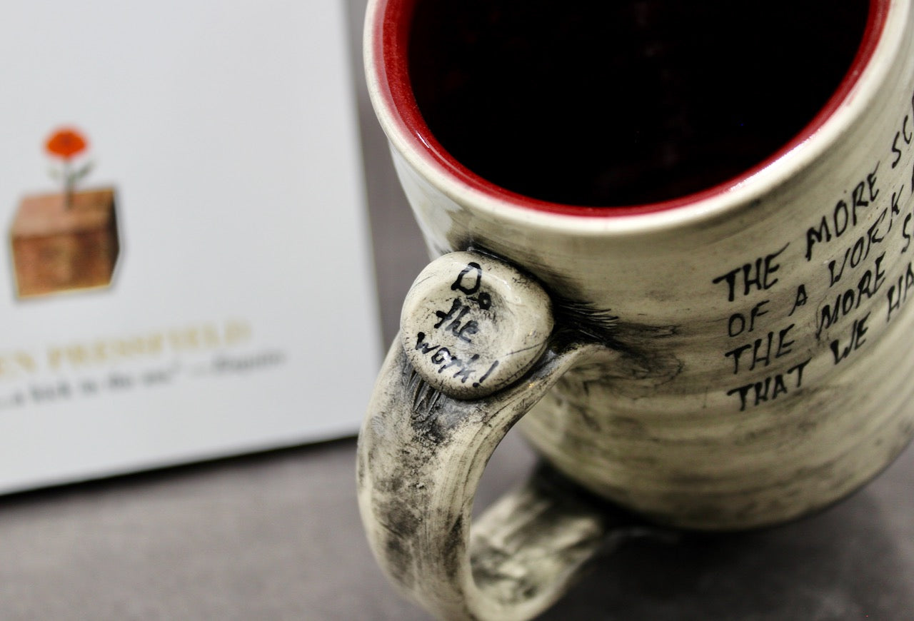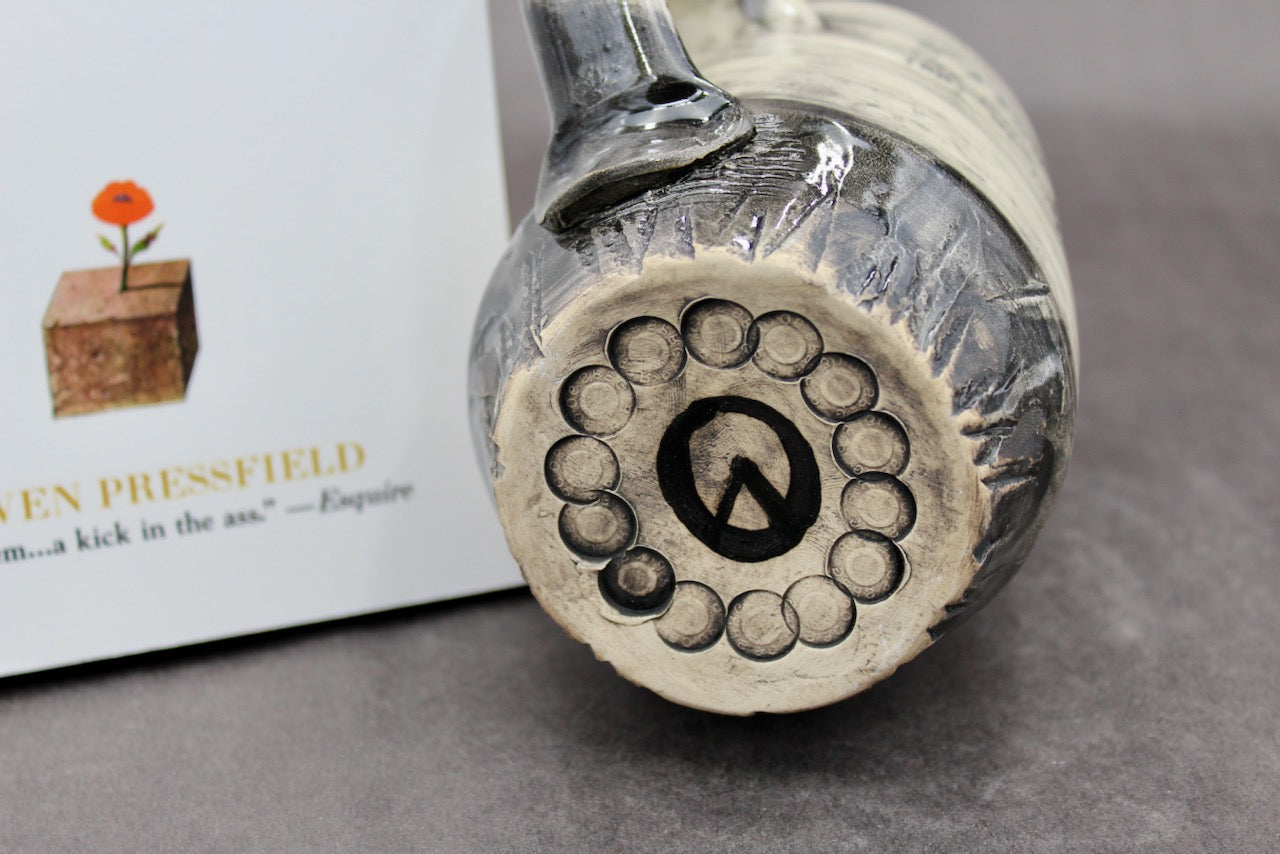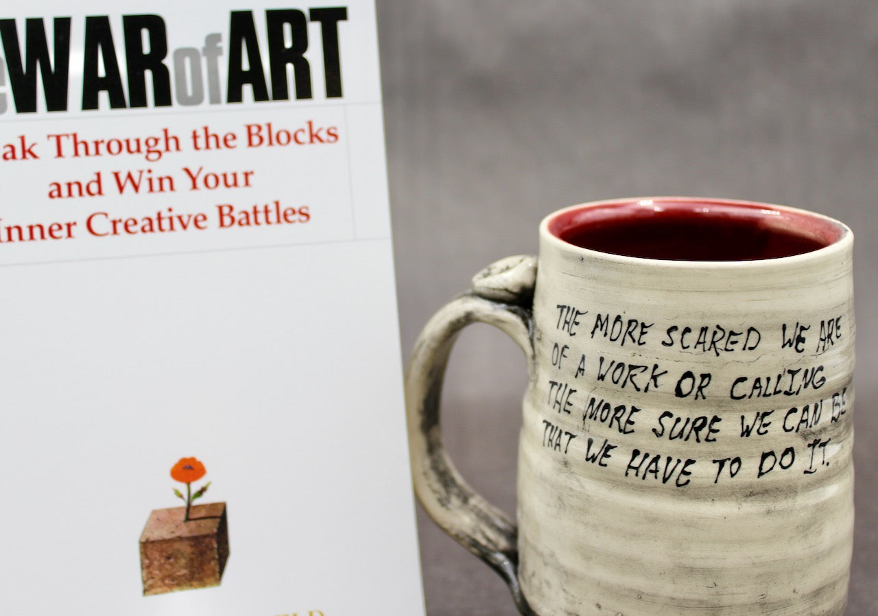 This mug is a collaboration between author Steven Pressfield (stevenpressfield.com) and potter Joel Cherrico (cherricopottery.com). Joel and Steven share the sales of their collaborative art 50/50.