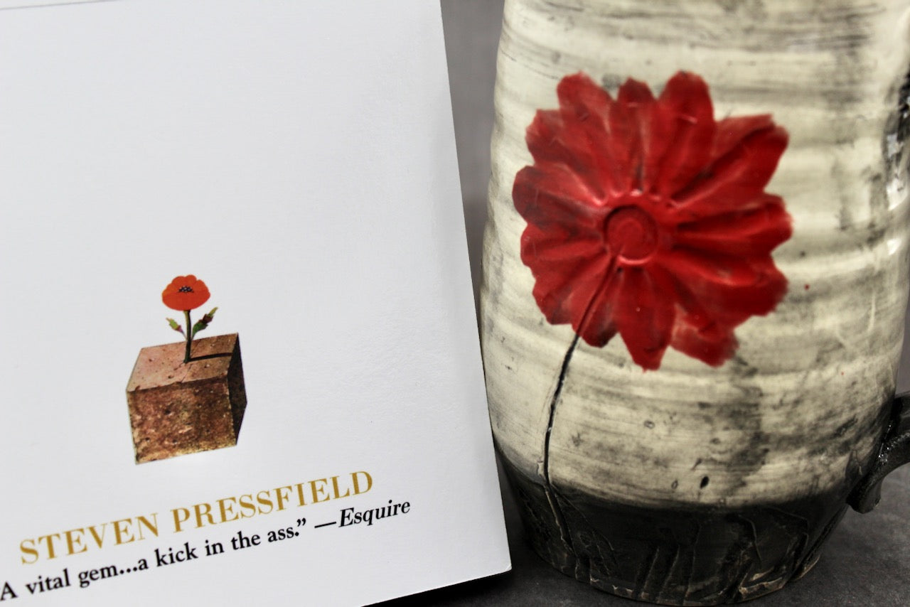 Collectors Edition Book: Two bookplates, made from handmade paper by Sienna Cherrico, were mounted in the inside cover by the Cherrico Pottery Team, using archival glue. One bookplate signifies the book as a Collectors Edition, exclusively available here on mugsandbooks.com It bares an insignia that matches the mug. The second bookplate was sent to Steven Pressfield, autographed, then mounted in your book.
