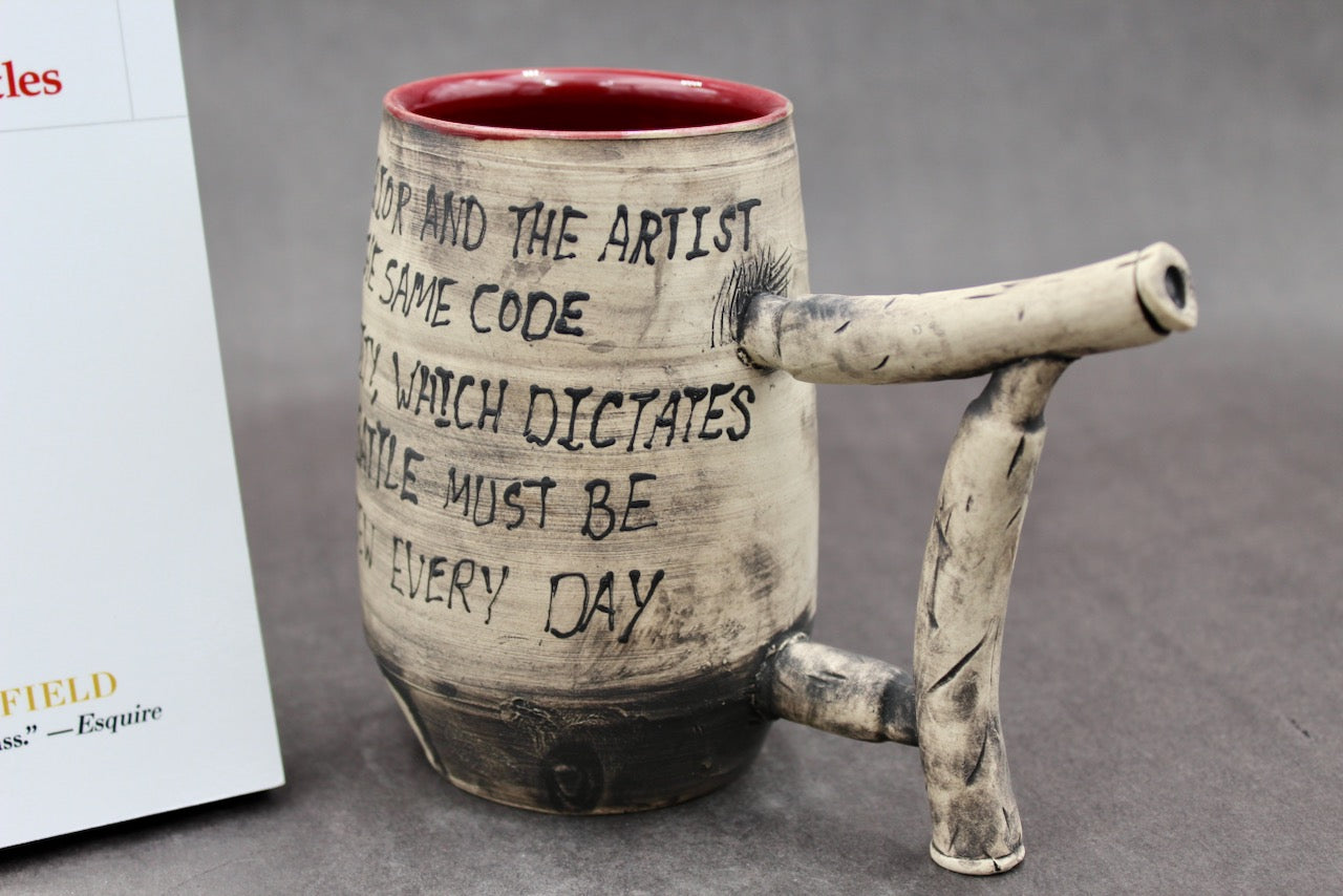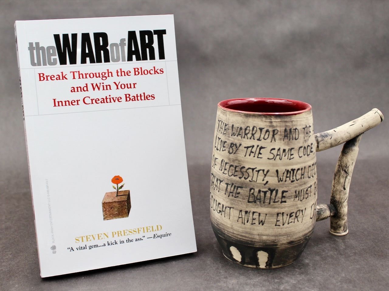 This mug is a collaboration between author Steven Pressfield (stevenpressfield.com) and potter Joel Cherrico (cherricopottery.com). Joel and Steven share the sales of their collaborative art 50/50.