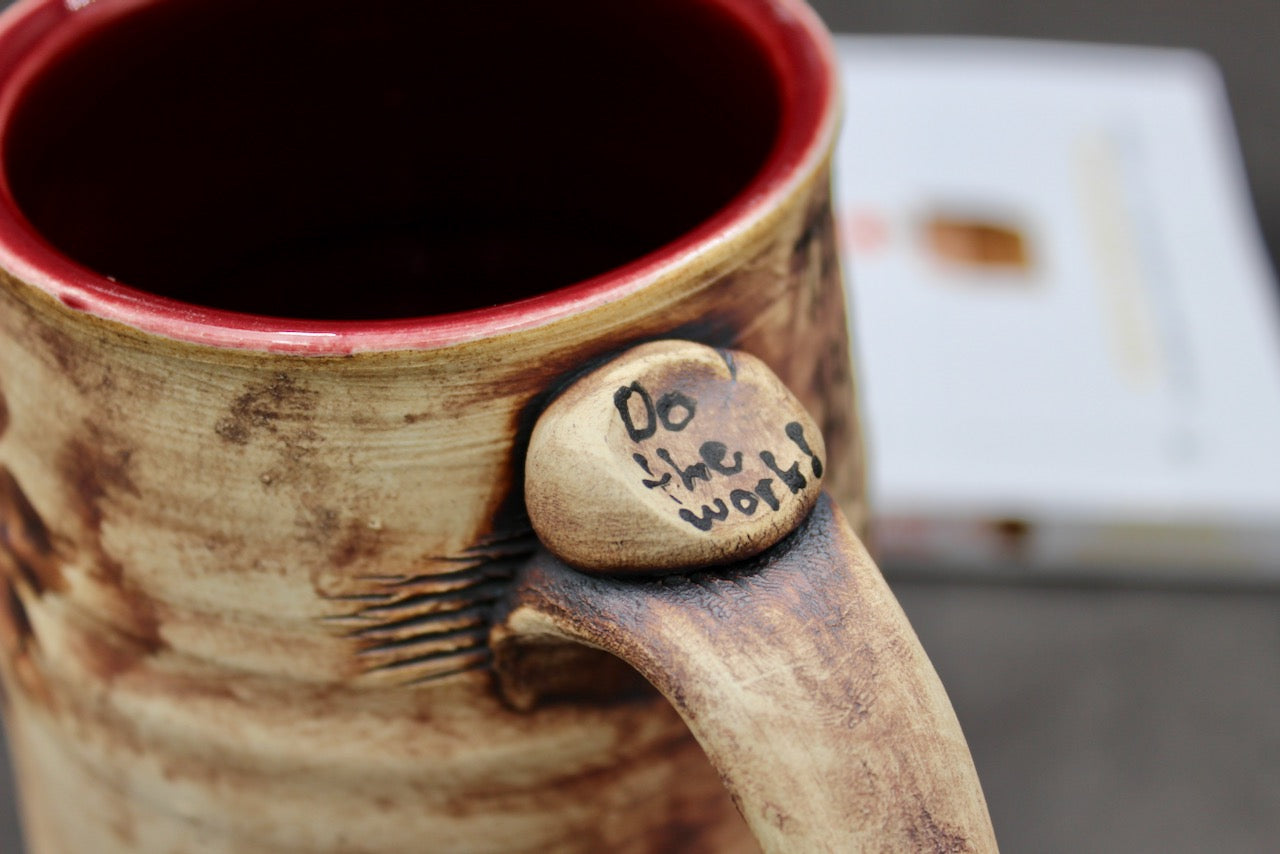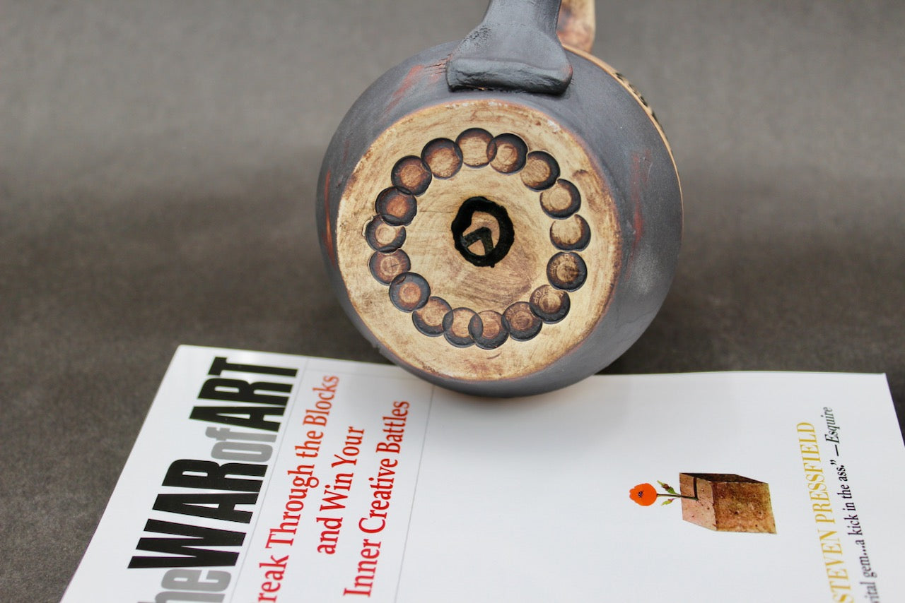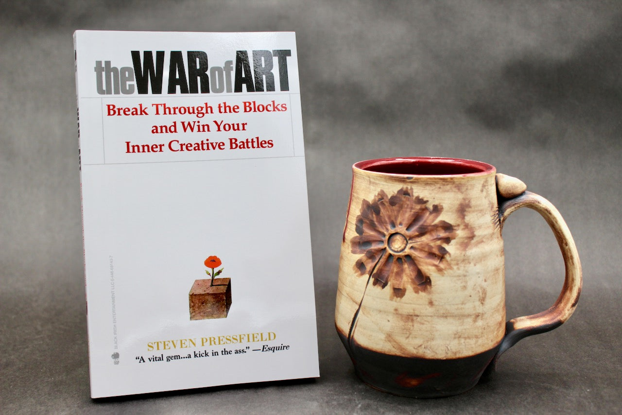 This mug is a collaboration between author Steven Pressfield (stevenpressfield.com) and potter Joel Cherrico (cherricopottery.com). Joel and Steven share the sales of their collaborative art 50/50.